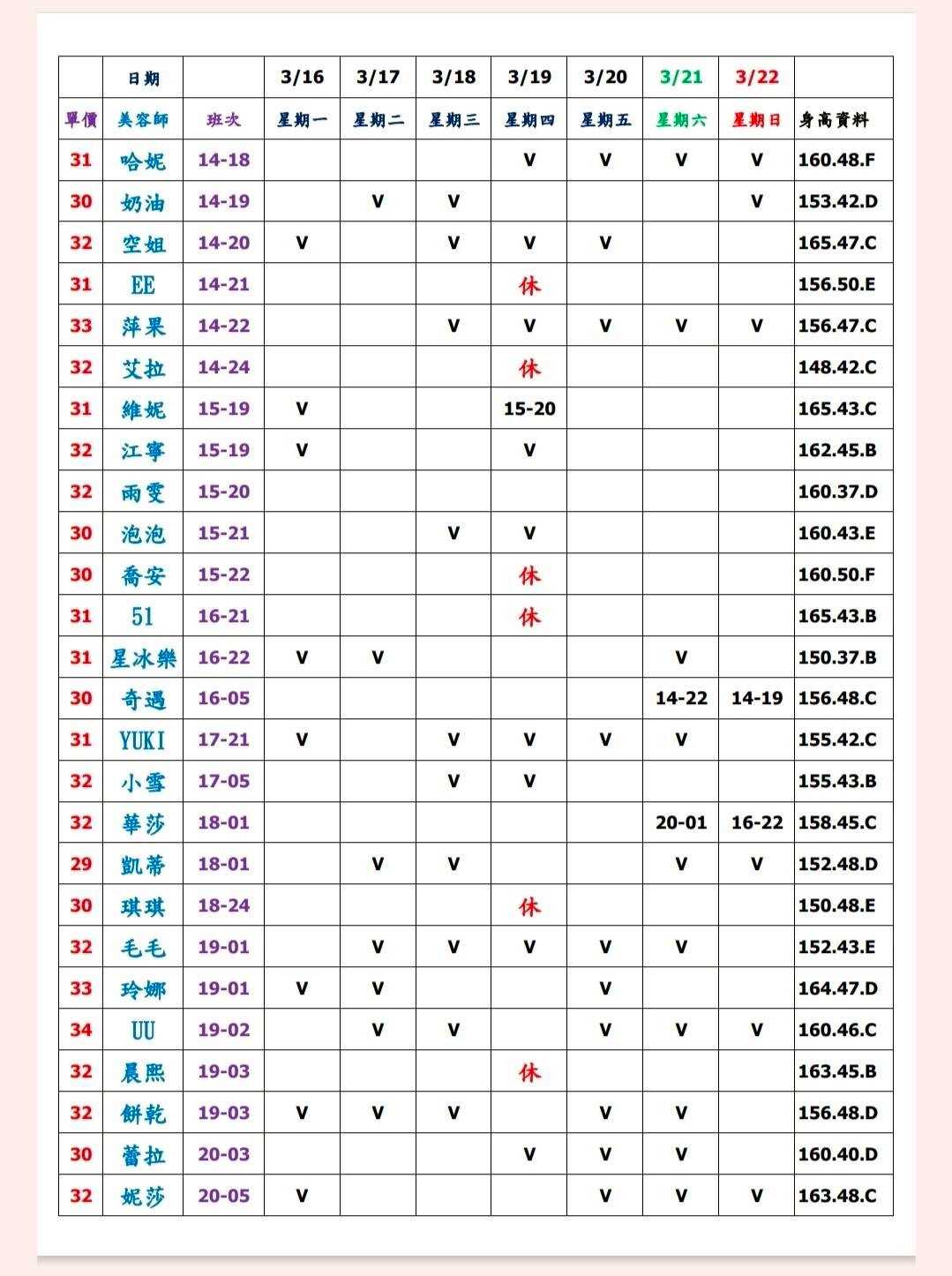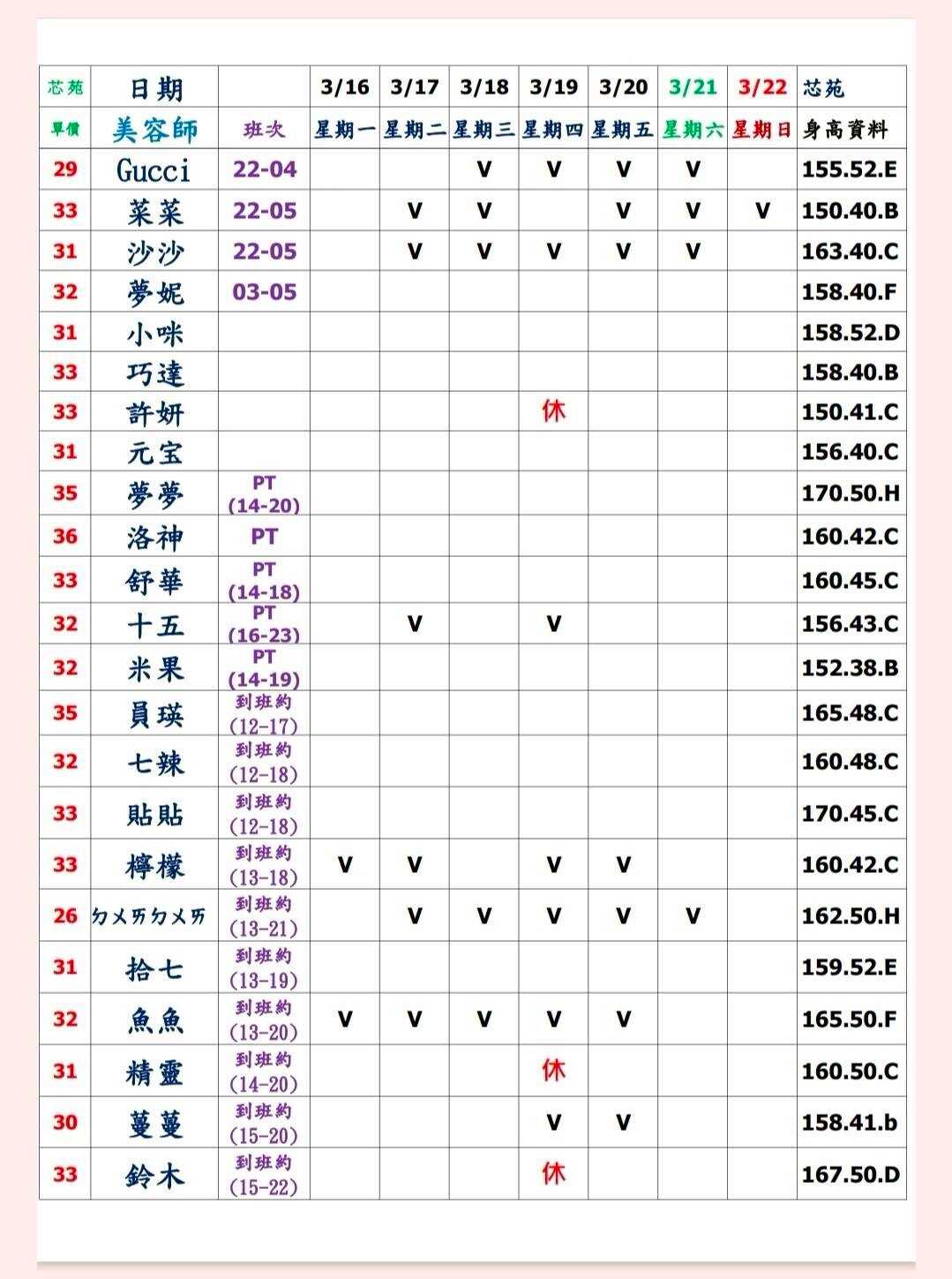 ※ 店家提供身高資料以及美容師單價、其餘疑問請直接連絡小幫手即可