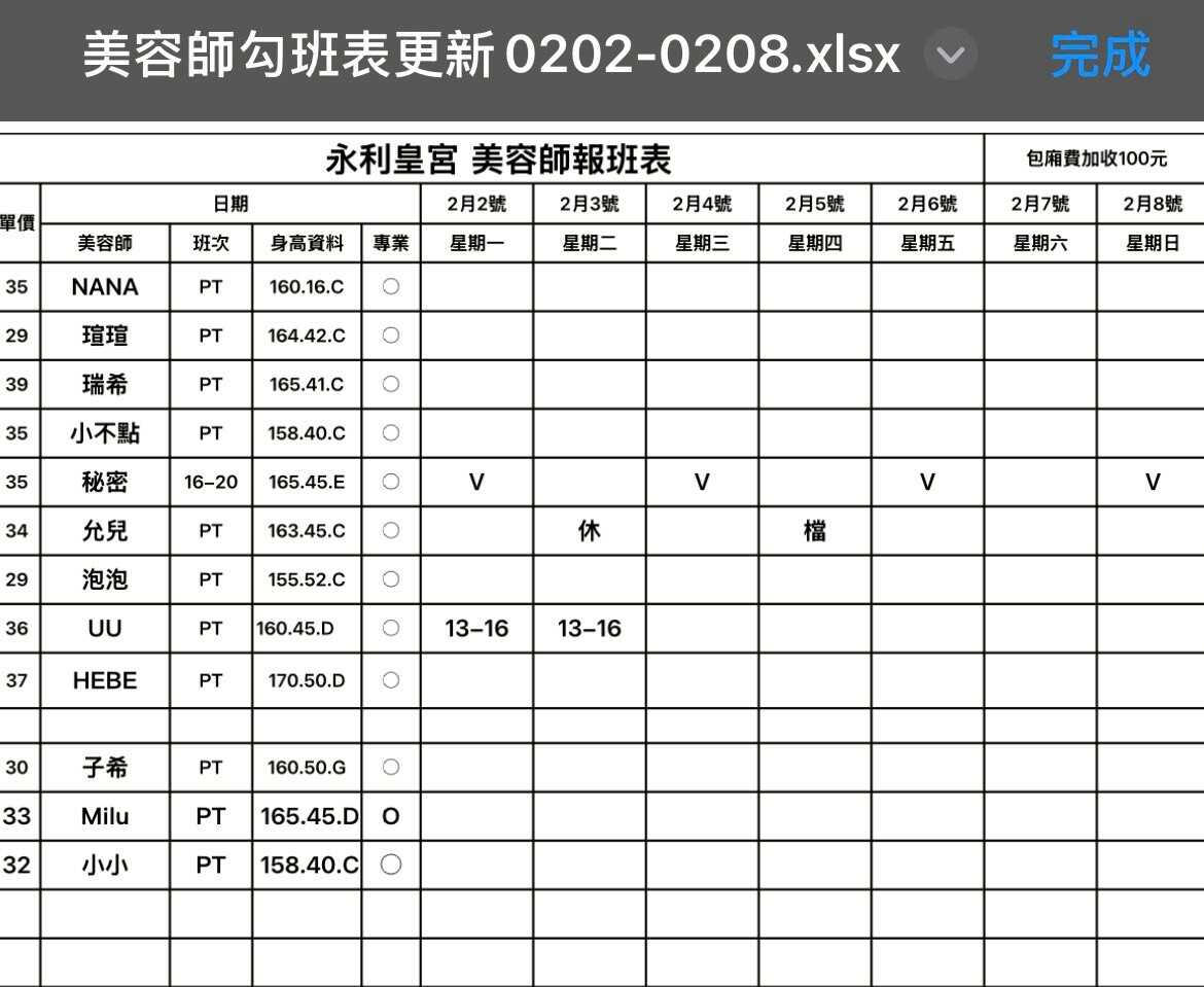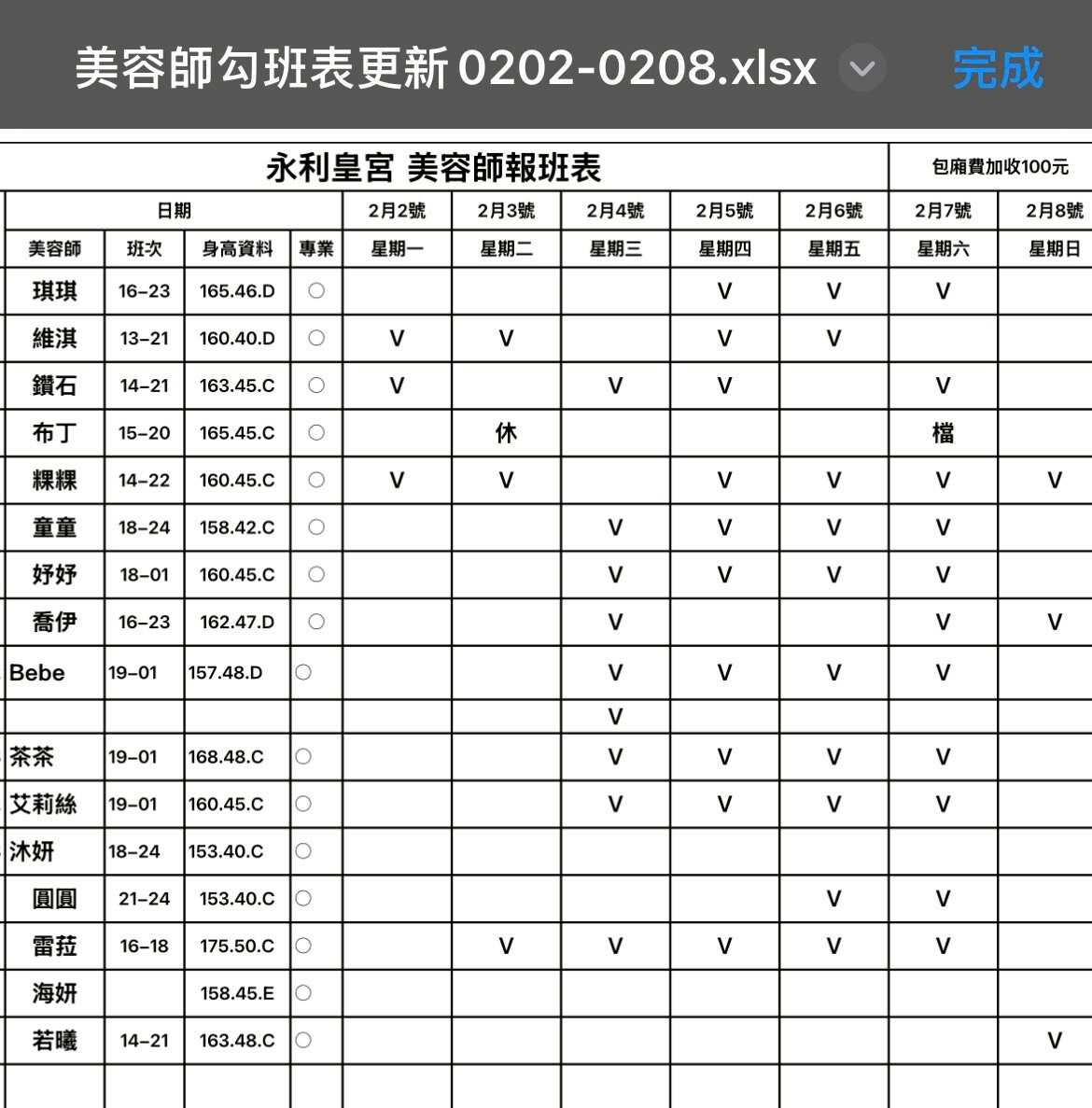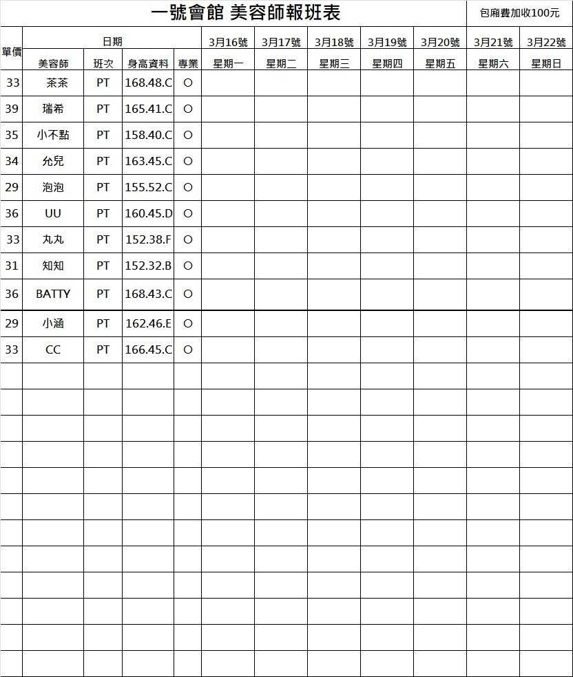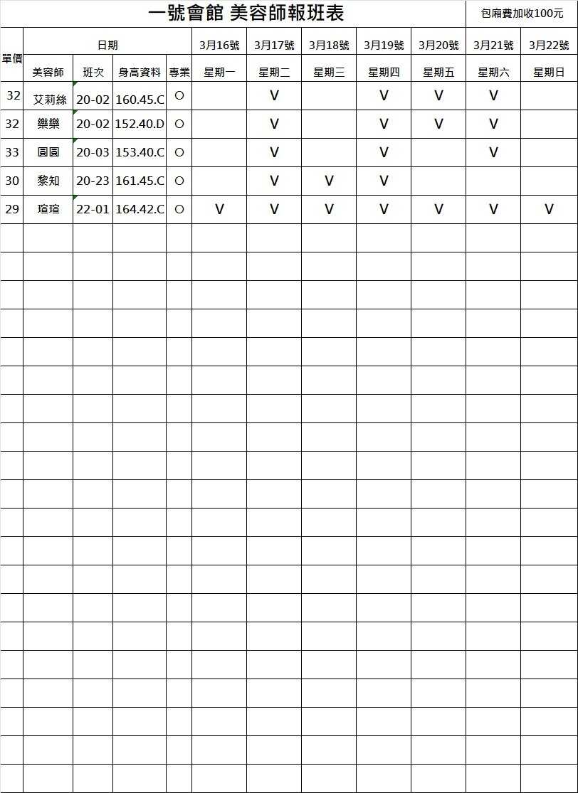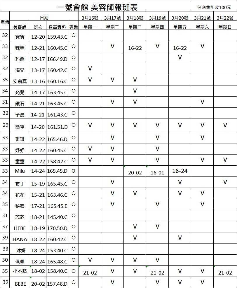 Time:有打勾為報班、時段代表當日的上班時段(不一定有空班)